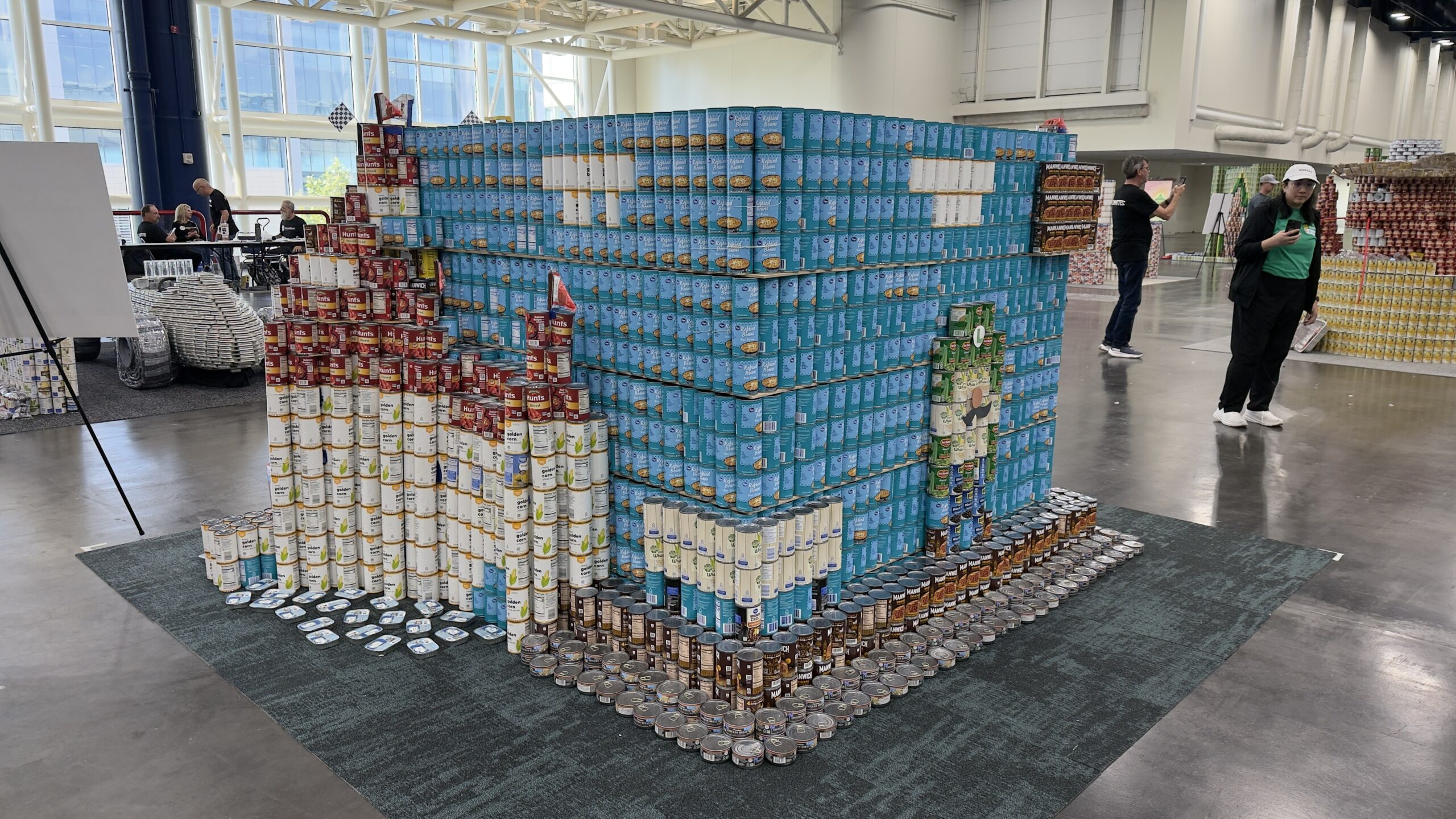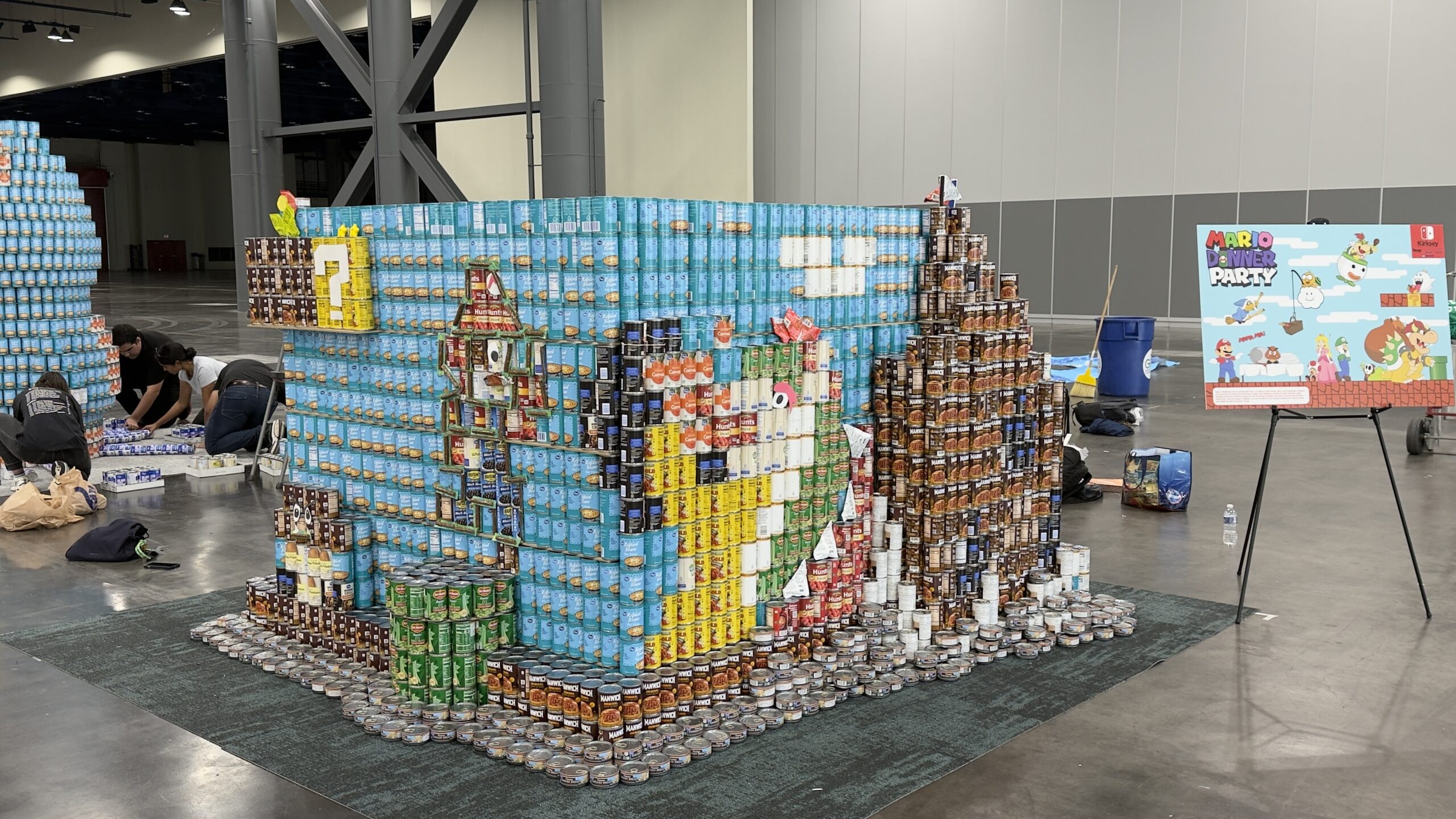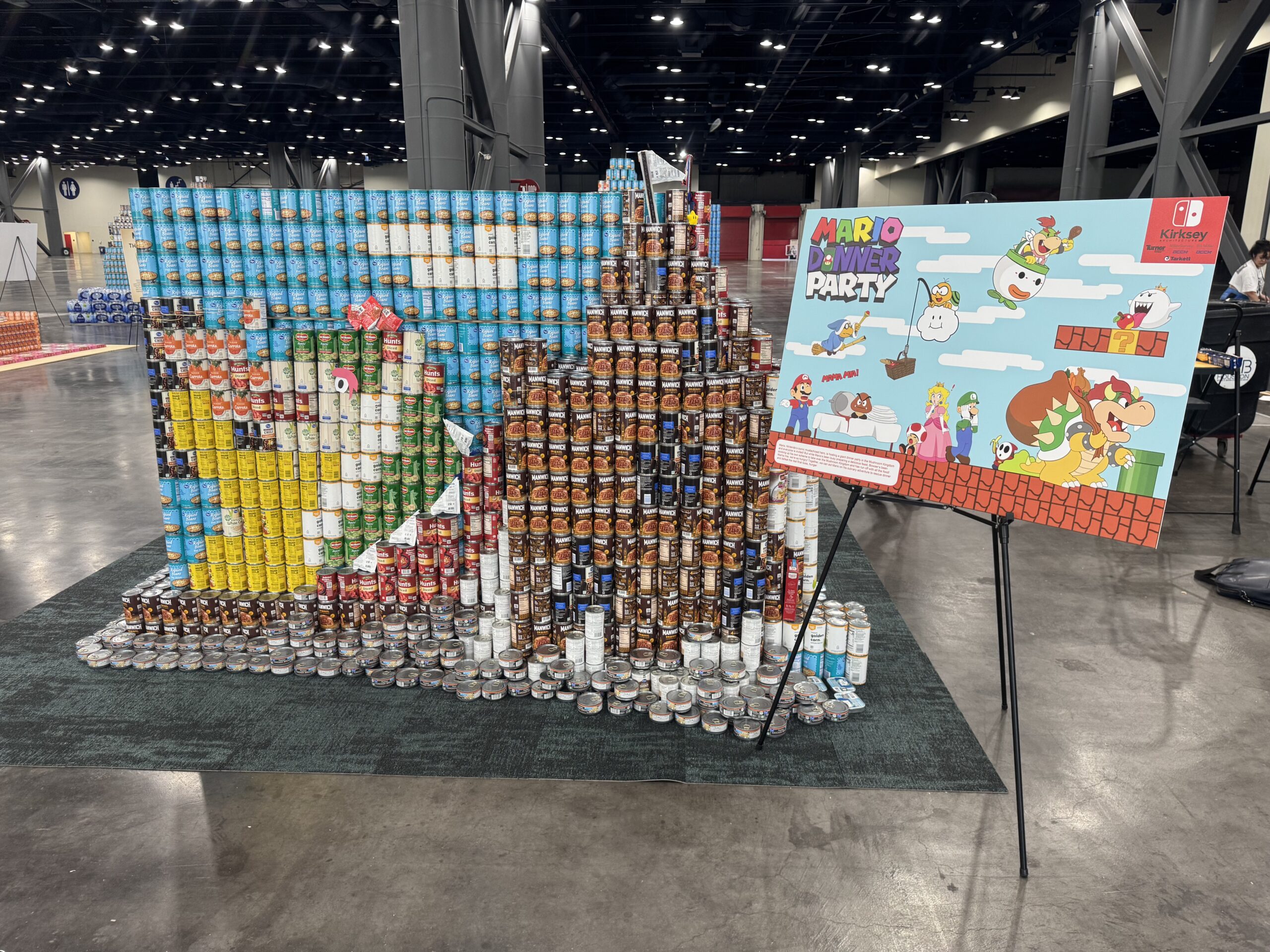 On “Build Day’ volunteers from these organizations came together to create a CAN-sculpture of “Super Mario Dinner Party.” With a passion for design build and a spirit of giving back, this group used a variety of nearly 7,000 can good items to create game scene which displayed “Mario, Nintendo’s iconic mustachioed hero, hosting a giant dinner party in the Mushroom Kingdom & everyone is invited…”